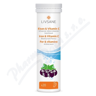 LIVSANE šumivé železo + vitamin C, balení 20 rozpustných tablet. Podporuje funkci imunitního systému, kostí, zubů, přispívá k odstranění únavy.