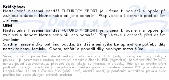 Nastavitelná hlezenní bandáž FUTURO™ SPORT je určena k posílení a opoře při ztuhlosti a slabosti hlezna nebo při jeho poranění. Přispívá také k ochraně před dalším zraněním.