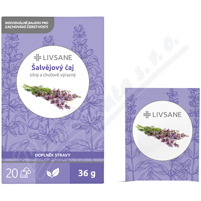 Čaj z listu šalvěje lékařské. Balený individuálně v ochranném sáčku. 1 balení obsahuje 20 sáčků. 1 sáček = 1,8 g.