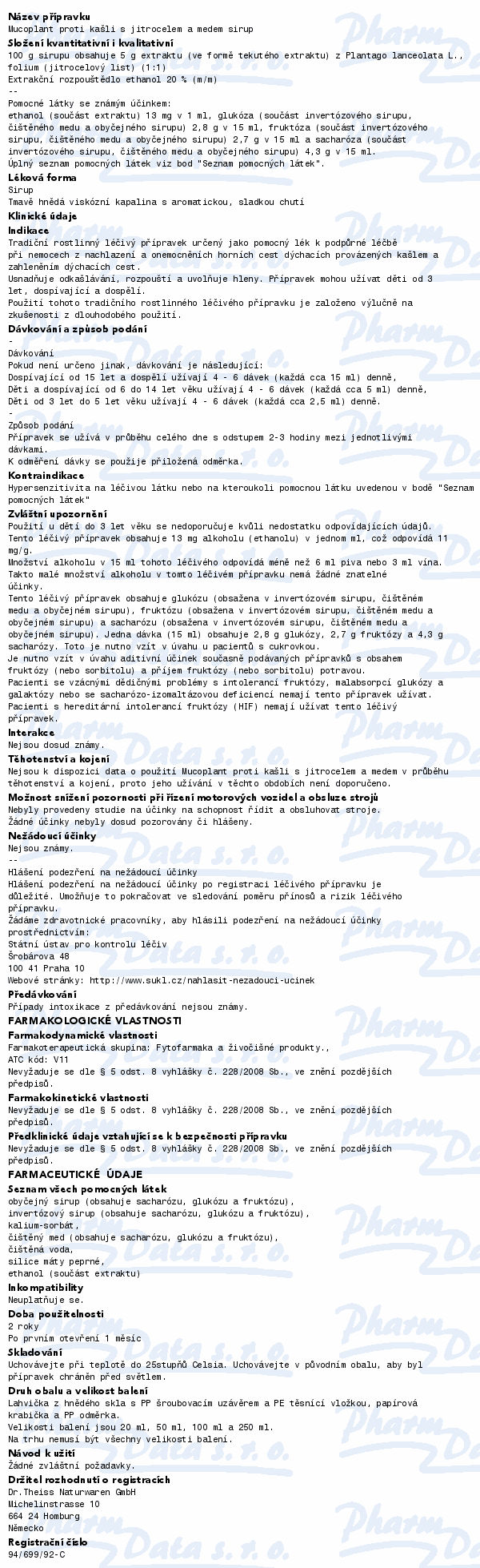 Sirup s přídavkem výtažku z jitrocele a mátové silice. Přípravek s kombinovaným účinkem, kdy zpomaluje tvorbu hlenu v průduškách a usnadňuje jeho vykašlávání. Čtěte pozorně příbalový leták.