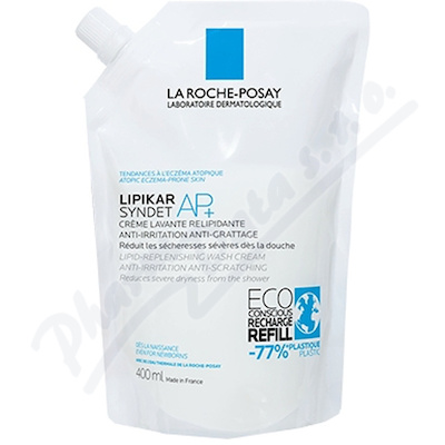 La Roche-Posay Lipikar Syndet AP+ náhradní náplň. Relipadační čisticí gel proti svědění a podráždění pokožky, 400ml. Hygiena suché a atopické kůže pro děti i dospělé. Bez parfému a konzervantů.