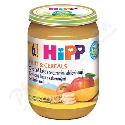 HiPP BIO Ovocná kaše s celozrnnými obilovinami je ovocno-obilný příkrm v BIO kvalitě vhodný pro děti od 6. měsíce. Obsahuje lepek.