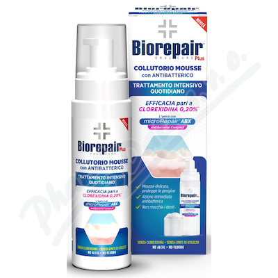 Ústní voda ve formě pěny s antibakteriálním účinkem. Inovativní pěna Biorepair Plus, s jemnou a hebkou texturou, šetrně obklopuje dásně a pomáhá bránit tvorbě bakteriálního plaku a chránit ústní sliznici před zánětem.