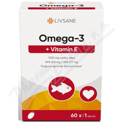 Doplněk stravy s omega-3 mastnými kyselinami (MK) a vitaminem E pro podporu správné činnosti srdce. Měkké gel. tobolky obsahují rybí olej s vysokou dávkou omega-3 MK: EPA (kyselina eikosapentaenová) a DHA (kyselina dokosahexaenová). Bez lepku a laktózy.