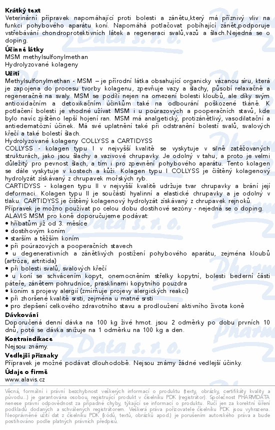 Veterinární přípravek napomáhající proti bolesti a zánětu,který má příznivý vliv na funkci pohybového aparátu koní. Napomáhá potlačovat pobíhající zánět,podporuje vstřebávání chondroprotektivních látek a regeneraci svalů,vazů a šlach.Nejedná se o doping.