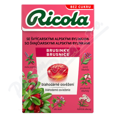 Bylinný drops bez cukru, se sladidly z rostliny stévie. Každý brusinkový bonbón Ricola obsahuje brusinkovou šťávu v kombinaci s osvědčenou směsí 13-ti bylinek pro svěží dech a příjemný pocit v krku.