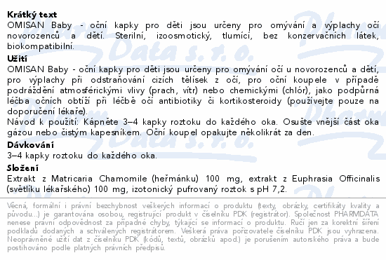 OMISAN Baby - oční kapky pro děti jsou určeny pro omývání a výplachy očí novorozenců a dětí. Sterilní, izoosmotický, tlumící, bez konzervačních látek, biokompatibilní.