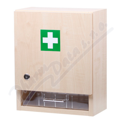 Nástěnná lékárna se zdravotnickými prostředky ve skříňce pro domácnosti a firmy do 10 osob. Obsahuje větší množství obvazového materiálu, základní vybavení pro poskytnutí první pomoci do příjezdu lékaře.