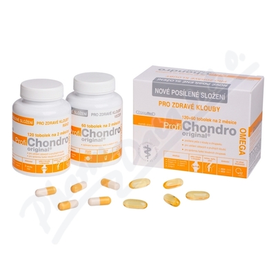 ProfiChondro Original® OMEGA – posílená péče pro zdravé klouby a chrupavku. Originální kombinace glukosaminu s omega-3 pro posílenou péči o klouby. Nyní navíc curcumin s piperinem a nativní kolagen typu II.